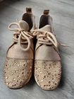 Step up your shoe game with these gorgeous Carvela rose gold sneakers! These stunners are perfect for a day out on the town or hitting the club with your friends. The metal cleats give them an athletic edge, while the studded accents add a touch of punk rock flair. Some wear and tare see pictures