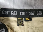 These CAT Caterpillar Utility Pants are designed for men in a size 34 with a regular fit. Made from a cotton blend fabric, these beige pants feature a utility style with cargo pockets, button and zipper accents, and a straight leg design. Suitable for workwear, they offer comfort and breathability, making them ideal for outdoor activities in winter, fall, and spring. The pants are easy to care for and have a flat front, suitable for a classic and modern outdoor look.