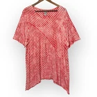 * Catherines Women Striped Tunic Tee Top Size 2X Red White Short Sleeve Stretch * *Good Pre-owned Condition *Please see photos for approximate measurements (in inches), fabric make, washing instructions, and other notable details. *Purchased items are shipped out next business day.