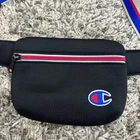 Champion Padded Black Belt Bag Stripe Strap Fanny Pack Crossbody Purse Wear as a fanny pack or a crossbody. Good condition, no flaws or major wear.