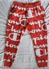 Elevate your activewear game with these Champion Reverse Weave sweatpants in orange and white. These pants are perfect for gym and training, walking, cross-training, and running and jogging. They feature an elastic waist with drawstring closure and inner draw cord adjusts the fit for maximum comfort. These sweatpants are made of a cotton blend fleece material, which makes them heavy and perfect for cold weather. They also have side seam pockets and a single patch pocket at the back, along with the Champion logo. These pants are easy to care for and are available in XL size with a regular fit. Add these stylish sweatpants to your activewear collection today!