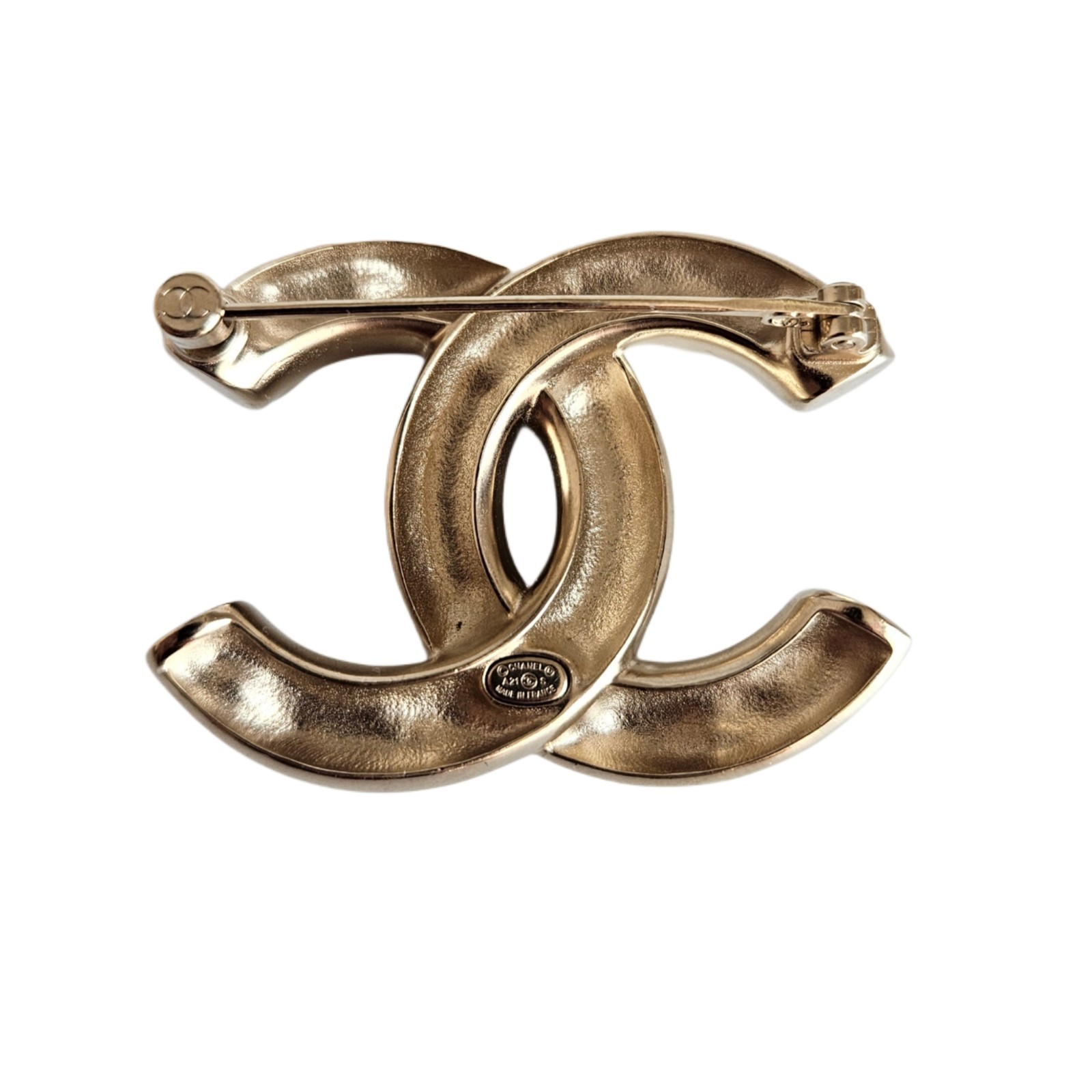 $ 575.0Chanel CC Crown Motif Gold Tone Pin Brooch Elegant Vintage Accessory