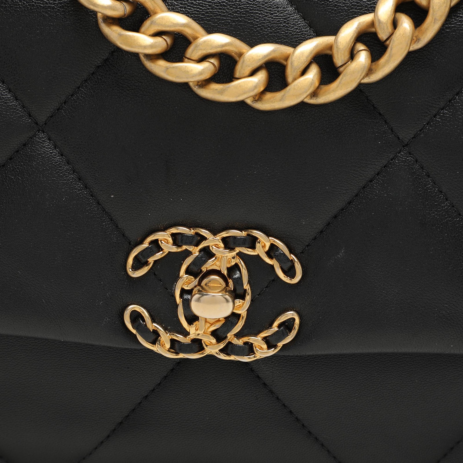 First unveiled in the Chanel Fall 2019 collection, the Chanel 19 bag is named after the year of its release, just like the Chanel 2.55. In design, the bag has exaggerated quilting and hardware in two tones. This version in black is made from leather and lined with fabric. It has a CC twist lock, a small chain handle to be carried by hand, and a longer chain for shoulder/crossbody wear.Certified by The Luxury Closet - This item has gone through a detailed authentication process overseen by our experts. We offer a lifetime guarantee of authenticity on all our items. Import duties, taxes and charges are not included in the item price. These charges are the buyers responsibility. Please check with your country’s customs office to determine what these additional cost will be prior to buying. Our eBay Store About Us Contact Us Add to Favorite Sellers Chanel Black Quilted Leather Small 19 Flap Bag $4992.9 First unveiled in the Chanel Fall 2019 collection, the Chanel 19 bag is named after the year of its release, just like the Chanel 2.55. In design, the bag has exaggerated quilting and hardware in two tones. This version in black is made from leather and lined with fabric. It has a CC twist lock, a small chain handle to be carried by hand, and a longer chain for shoulder/crossbody wear. Product Details Brand Color Black Dimensions Height: 18 cm, Width: 7 cm, Length: 25 cm Material Leather Size Small Outsole Width Outsole Length Heel Height Includes Original Dustbag, Original Box, Info Booklet Certified by The Luxury Closet This item has gone through a detailed authentication process overseen by our experts. We offer a lifetime guarantee of authenticity on all our items. How We Check The in-house team of experts at The Luxury Closet is highly trained to verify the authenticity and the condition of the luxury products. They ensure that only 100% authentic items are put on sale.The evaluation process is unique with its own mix of assessment criteria and differs according to the category. Each item is evaluated based on the following combination of hallmarks, hardware, stitching, symmetry, material, craftsmanship, stamping, codes, hologram stickers, and packaging. Our authenticators also check if the items have been modified or amended (e.g., aftermarket diamonds, replaced batteries, repaired bags, etc.) International Buyers Import duties, taxes and charges are not included in the item price. These charges are the buyers responsibility. Please check with your country’s customs office to determine what these additional cost will be prior to buying.