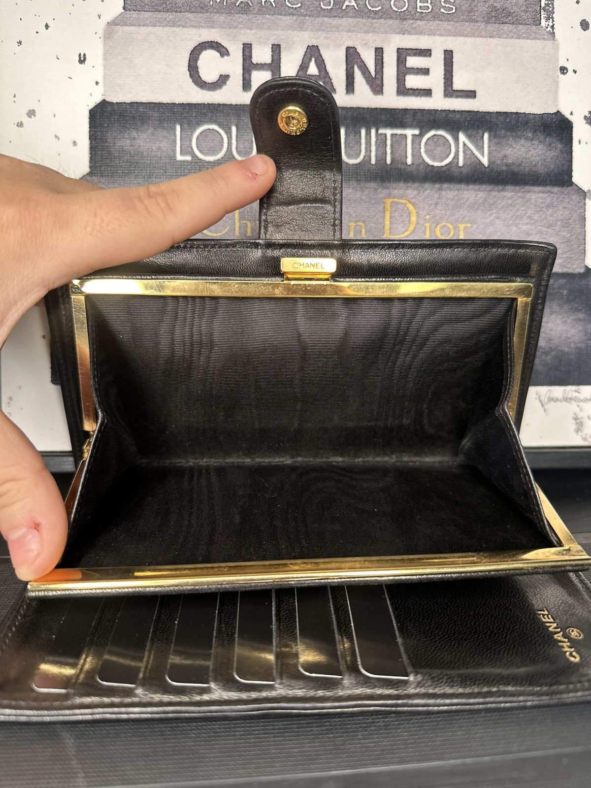 chanel leather kisslock wallet black. Condition is Pre-owned. Shipped with USPS Priority Mail.