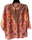 Charter Club Linen Luxury Coral Beaded Embellished V-neck Tunic Top Sz L. Side vent. Pit to pit approx 21 Shoulder to hem approx 29