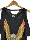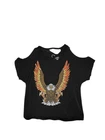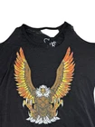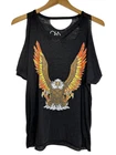 In mint preowned condition with no flaws to note! Unique and classic design Chaser Bald Eagle Cut Out Graphic tee Black base with a burnout fabrication Bald Eagle graphic print in front Natural cut out design along hem, at shoulders, and neckline Short sleeves with a wide loose fit opening in the pits Super lightweight and ultra soft cotton blend Semi sheer Made with cotton/polyester Pit to pit: 20" across Full length: 27" #chaser #chasertshirt #chasertop #chasershirt #cutouttop #baldeagle #cutout #cutouttshirt #cutoutshirt #chaserbrand #coldshouldertop #coldshoulder #coldshouldertshirt