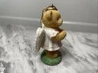 This is a Cherished Teddies Mini Ornament #118317 from Enesco. It is a small resin angel ornament designed for Christmas. Manufactured in 2003 in China, it features a hanging design and is part of a set.