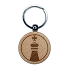 Chess Piece Black King Engraved Wood Round Keychain Tag Charm