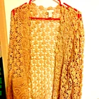 Chico’s Crochet Top (TAN/GOLD TONES COLOR) PREOWNED GREAT CONDITION Over Shirt Size 3 SLEEVE LENGTH 27" LENGTH 26" VERY UNIQUE & PRETTY all items are shipped from a, Smoke Free home PLEASE ASK ANY QUESTIONS THAT YOU NEED HELP WITH, THANKS