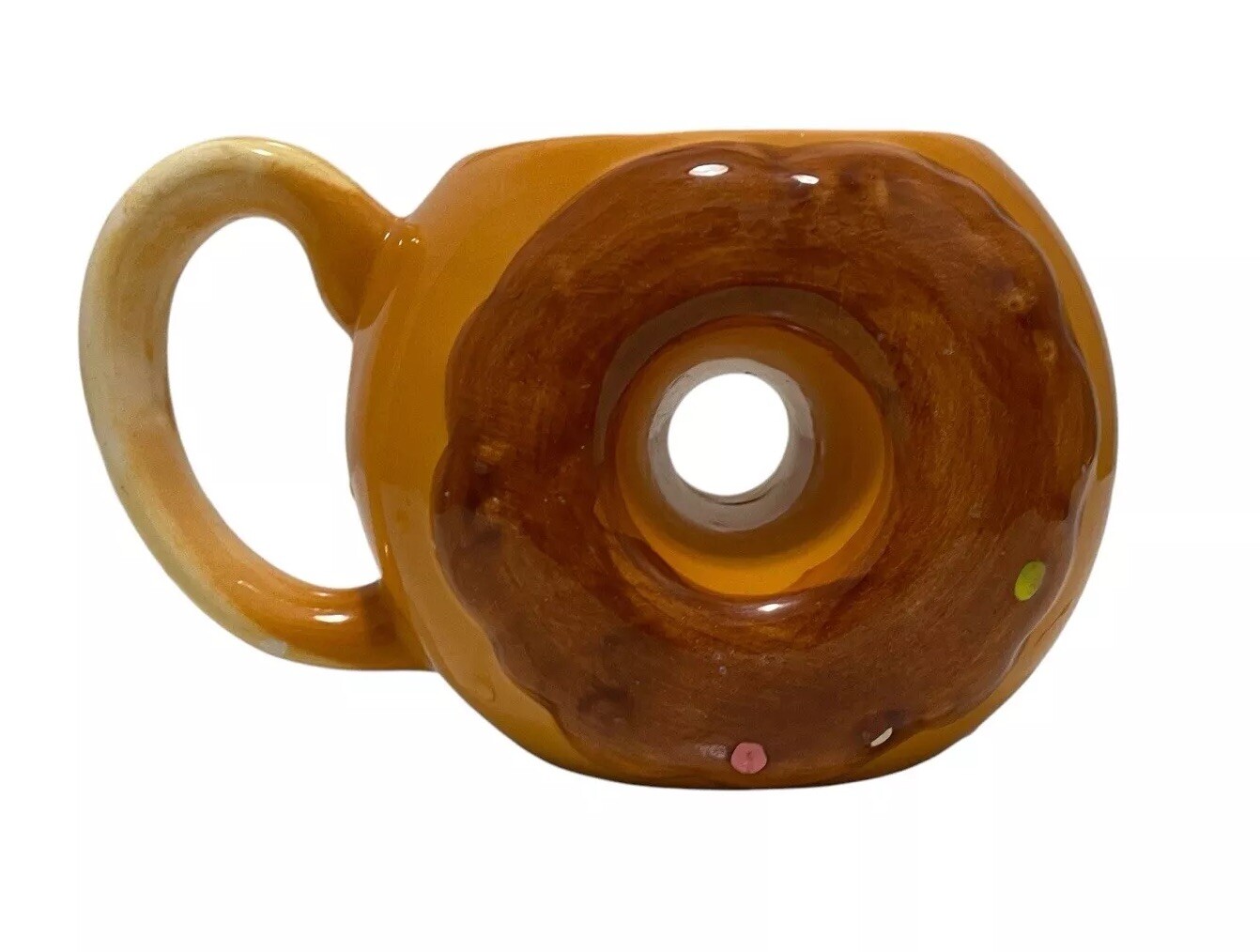 Chocolate Doughnut Novelty Mug W/ Sprinkles Donut Shaped Coffee & Tea Cup. Shipped with USPS Ground Advantage. Item is used, preowned. Item has minimal wear and distressing. Solid and stylish design.