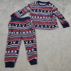 Xmas clothing bundle size 2 to 3 years. Unisex designs, so suitable for girls or boys. Includes: - F&F red long sleeve top with reindeer print. Some slight cracking to the print and very minor colour fade. Otherwise good used condition. - F&F navy red and white fair isle pjs set with long sleeve top and trousers. Does have some bobbling to the fabric as pictured. Otherwise good used condition.