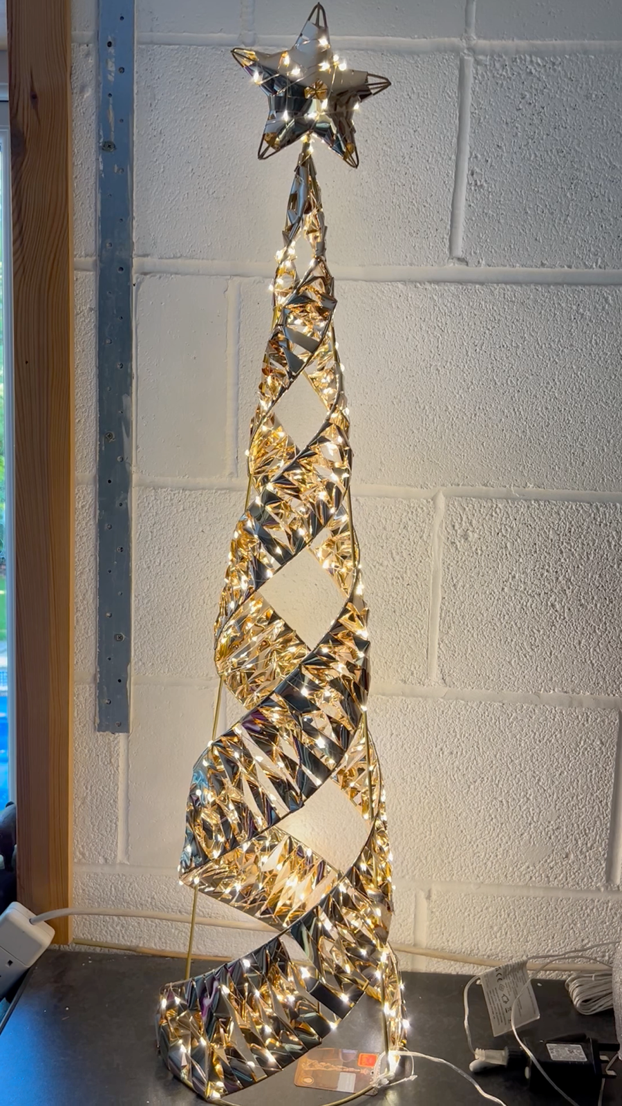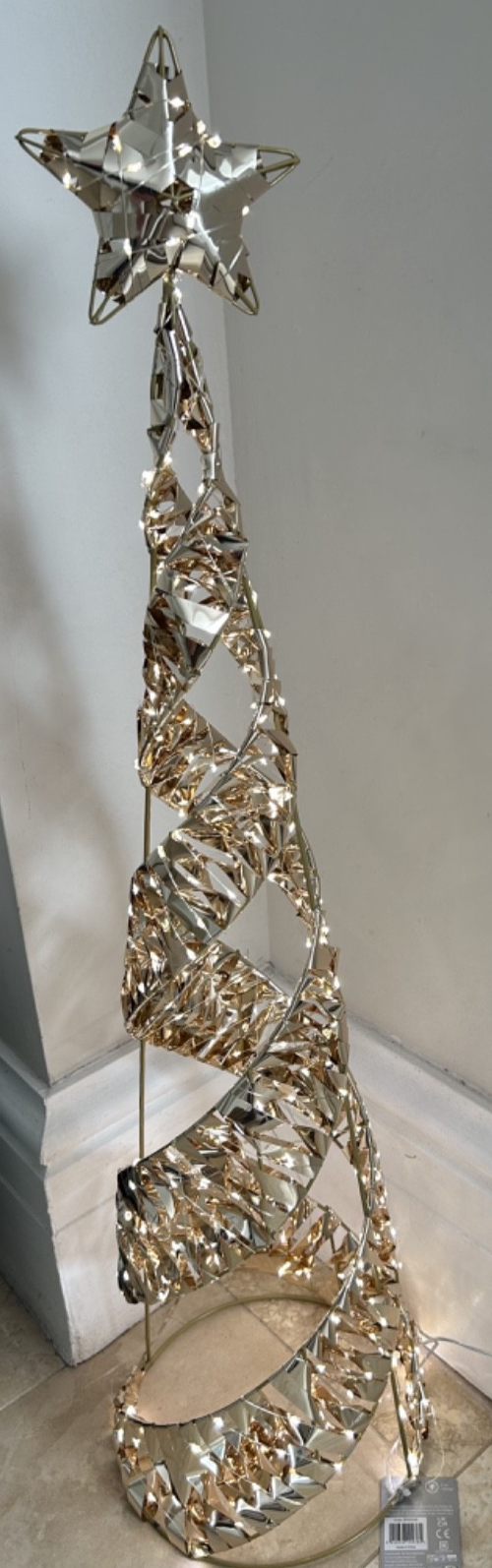 CHRISTMAS, FESTIVE GOLD TWIST STAR-BELISK LED LIGHT UP 400 Warm White LEDs Indoor or Outdoor Use 1m Tall Finished off with a star Mains Power 5 Metre Cable BRAND NEW IN GIFT BOX LOVELY GIFT OR KEEPSAKE FREE UK ECONOMY SHIPPING