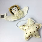 Christmas Tree Hanging Ornaments Fabric Angel and Star. Very good condition, no damage. Angel is 6" W and Star is 5". InvN/GWB/1