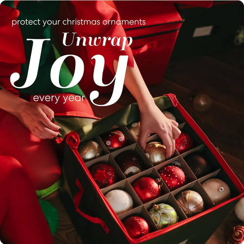 Handy Laundry, Christmas Ornament Storage, Stores up to 64 Holiday Ornament, Adjustable Dividers, Zippered Top, Two Handles Attractive Storage Box Keeps Decorations Clean & Dry for Next Season, Green LuxeFusion Product Description Features SPACE-EFFICIENT STORAGE - This ornament storage organizer compact yet spacious design enables the storage of up to 64 ornaments in a minimal amount of space, making it ideal for homes with limited storage areas. CUSTOMIZABLE STORAGE COMPARTMENTS - Equipped with adjustable dividers, this storage box solution provides a versatile organization system, allowing for the accommodation of ornaments of various sizes and shapes, ensuring each piece is neatly stored and easily accessible. ROBUST AND PROTECTIVE MATERIAL - Constructed with high-quality, durable materials, the product is designed to protect delicate ornaments from dust, moisture, and damage, ensuring they remain in pristine condition year after year. USER-FRIENDLY DESIGN - Featuring a convenient zipper closure and a clear viewing window, this storage system is designed for easy use. Its lightweight yet sturdy structure makes it simple to store and retrieve, enhancing the overall holiday decoration experience. COST-EFFECTIVE SOLUTION - Offering a perfect balance of quality and affordability, this ornament storage holder system is a cost-effective solution for holiday enthusiasts looking to protect their investment in holiday decorations without breaking the bank. Product Details Brand: âHandy Laundry Color: âGreen - 64 Material: âFabric Special Feature: âstackable, customizable, portable, lockable, shatterproof, Adjustable Durable Style: âModern Recommended Uses For Product: âDecorations Product Dimensions: â13"L x 13"W x 13"H Capacity: â64 Liters Closure Type: âZipper Water Resistance Level: âNot Water Resistant Item Weight: â3.9 Pounds Opening Mechanism: âZipper Shape: âRectangular Pattern: âSolid Number of Items: â1 Storage Volume: â64 Liters Number of Compartments: â64 Unit Count: â1 Count Item Package Quantity: â1 Material Feature: âLightweight, flexible, and durable Occasion: âChristmas Manufacturer: âHandy Laundry Part Number: â5099 Item Weight: â3.9 pounds Country of Origin: âChina Item model number: â5099 Is Discontinued By Manufacturer: âNo Size: âZippered-Top Number Of Pieces: â1 Special Features: âstackable, customizable, portable, lockable, shatterproof, Adjustable Durable Batteries Included?: âNo Batteries Required?: âNo Brand: Handy Laundry Color: Green - 64 Material: Fabric Special Feature: stackable, customizable, portable, lockable, shatterproof, Adjustable Durable Style: Modern đ Free Shipping All orders ship free and fast to your doorstep. đ Easy Returns Satisfaction guaranteed. 30-day returns, no questions asked. đŹ 24/7 Support Contact us anytime; weâre here to help, day or night. Brought to you by LuxeFusion â Quality you can trust.