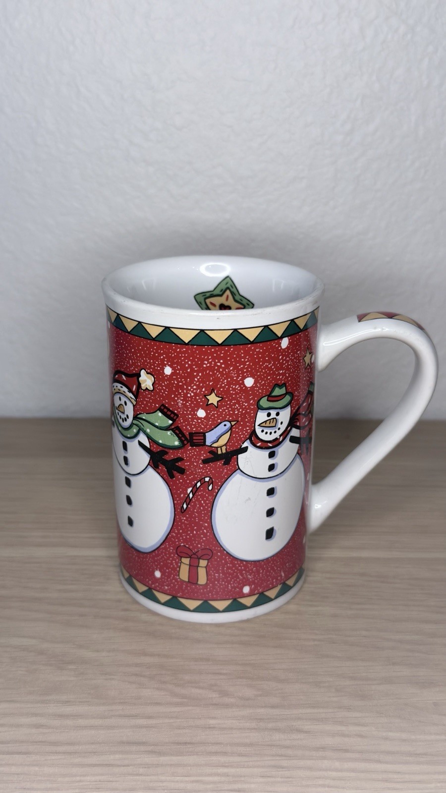 Christmas Snowman Coffee Mug – Red Holiday Ceramic Cup with Gift & Star Design Like new!