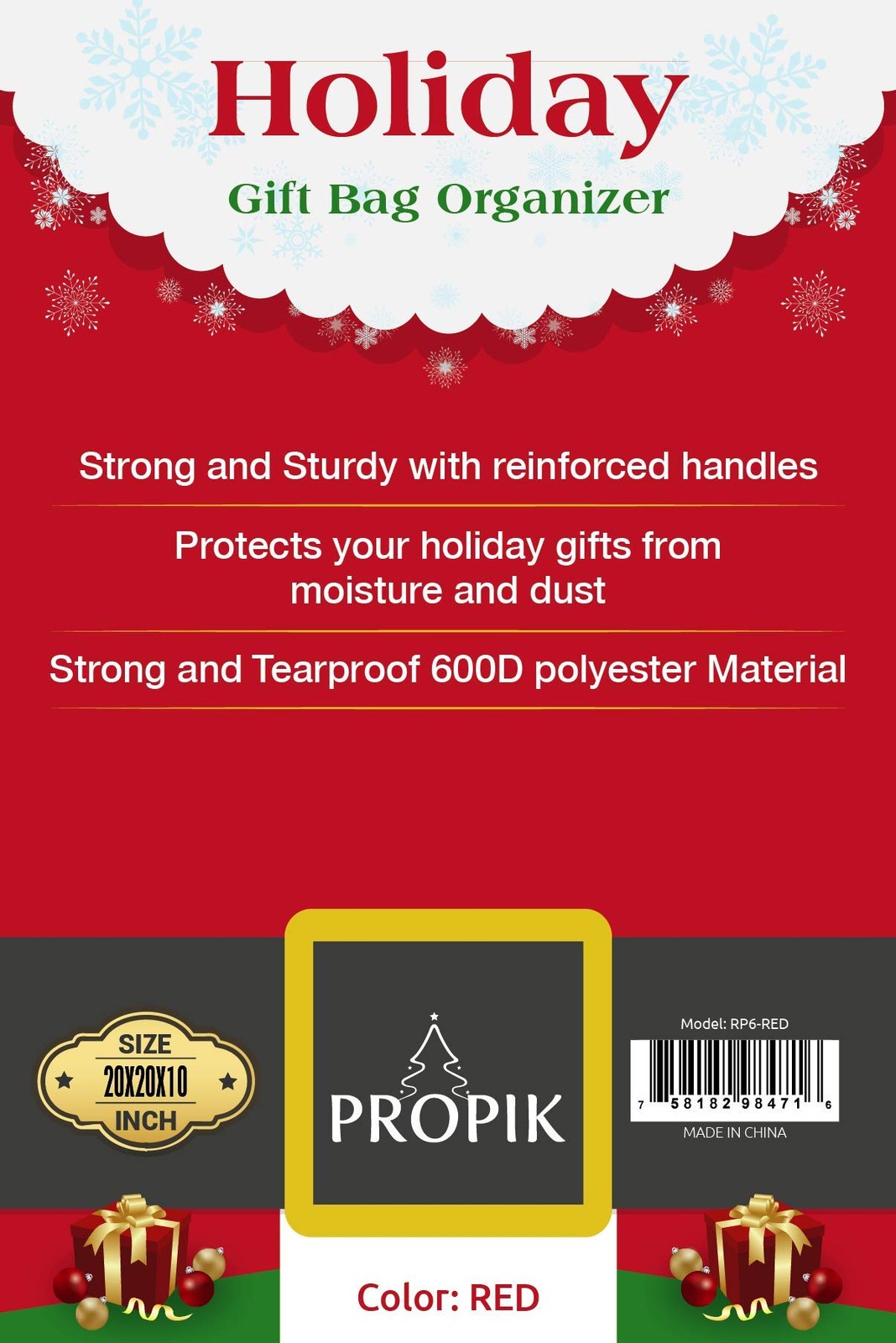 These Storage bags by is designed to help you stay organized and never misplace little ornaments again. These are perfect for Xmas gift wrap, ribbons, tissue, gift bags, gift cards, and any holiday supplies and accessories you might need. It's well zippered to protect your things of falling out. It's made of strong, durable polyester material and its tear-resistant . It protects your supplies from getting ruined and/or damaged and stays clean year round. Each bag measures 20 x 20 x 10 inch. The attached carrying handles have been reinforced to ensure durability. Simply insert your accessories, zip up the bag and store it until needed again next season. COMPANY INFORMATION We offer a wide selection of holiday tree bags, storage bags and boxes ranging in size, color and finishes so you can be sure to find one that fits your home and holiday decor perfectly. Our goal is to be a part of your family traditions for years to come and we stand behind every item that we sell searches worldwide in putting in the utmost effort to bring the highest standard quality production to meet consumer's satisfaction Durable holiday storage organizer for all your gift accessories, Strong tear-proof polyester material Heavy-duty construction A perfect storage bag to fit your holiday supplies and accessories. Features a few exterior pockets with Full Length Zipper The attached carrying handles have been reinforced to ensure durability. And for easy carrying when fully loaded Measures: 20 x 20 x 10 inch