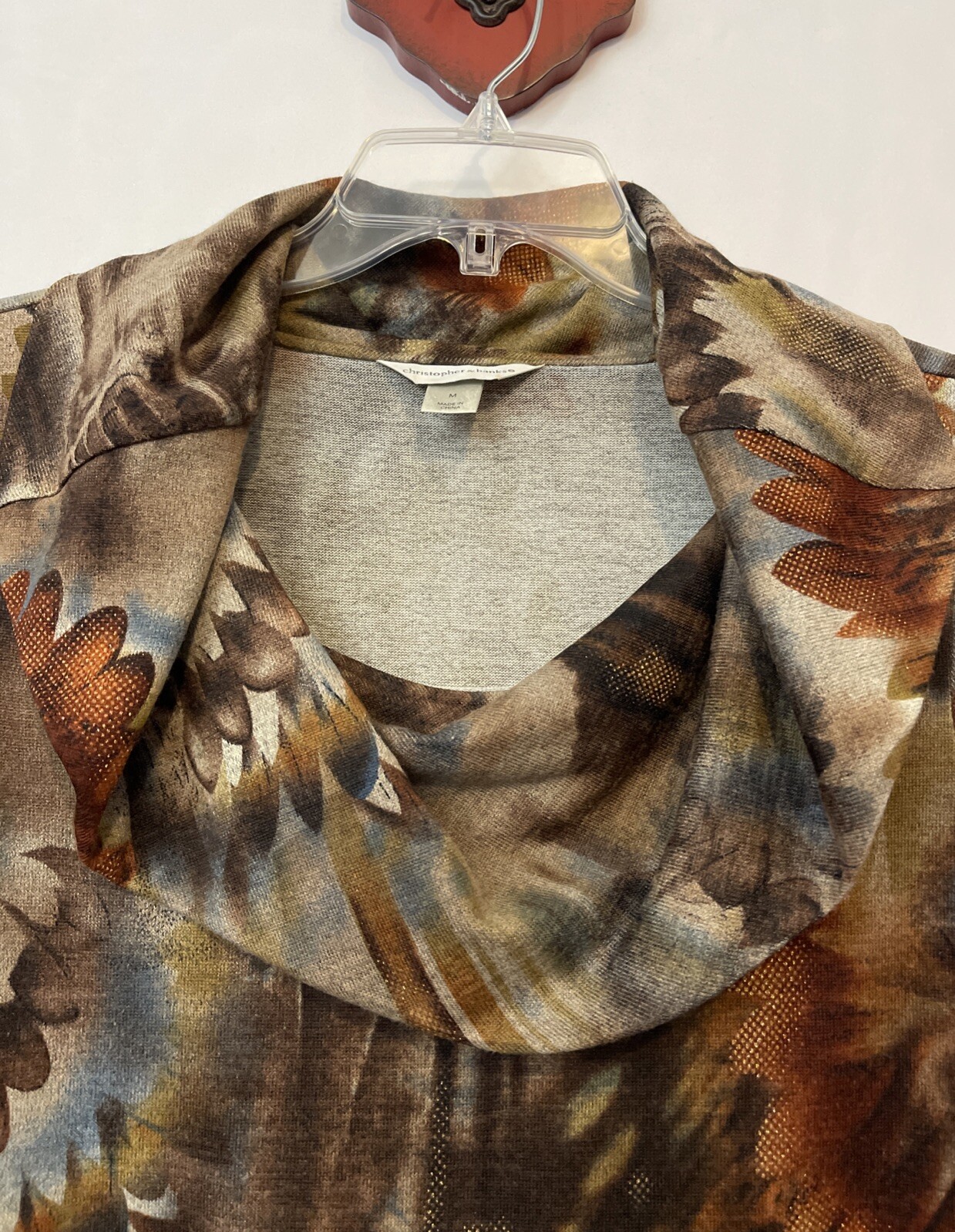 Elevate your wardrobe with this stunning Christopher Banks blouse! The mock neck and 3/4 sleeves create a classic and sophisticated look, while the floral pattern and glitter accents add a touch of playfulness. The blouse is made of a polyester and spandex blend, making it both stretchy and breathable. The belt accentuates your waist and adds a touch of glamour to the blouse. This blouse is perfect for any season. The Christopher Banks brand is known for its quality and attention to detail, making this blouse a must-have for any fashion-forward woman. Length: 27 inches. Chest: 17 inches across laying flat.
