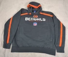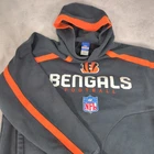 Show your love for the Cincinnati Bengals with this NFL Reebok sweatshirt hoodie. The gray pullover features a graphic print of the team's logo and is made of a comfortable and breathable knit fabric, perfect for any season. The hoodie comes with a hood, long sleeves, and pockets for added convenience. Description may be generated by AI. · Ships within 24 hours · Free 30 Day Returns · Contact us via message for prompt resolution with any issue