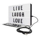 Inspired by old Hollywood vintage cinema, slide interchangeable clear plastic tiles into rails on the front of this sleek light box to create words and phrases. Flip a switch and watch your words light up with life! Great for home décor, wedding décor, birthdays, milestone celebrations, photoshoots, movie nights, and so much more. Set Includes: Led Light Box 109 letters, numbers and symbols. Place it on a tabletop or mount onto a wall and light up your world with fun quotes and phrases. VINTAGE CINEMA STYLE LIGHTBOX: Are you looking for a unique decorative piece with vintage vibes? Then the cinema light box is exactly what you need! The LED light up box is designed to look like those cinema and theater signs that would advertise a movie and share a fun message. You can now write your own fun, inspirational or motivational message on the mini lightbox and create a black-and-white film feel to your space! MORE LETTERS & CHARACTERS: So what message are you planning to write on the cinema lightbox? Thanks to the 109 letters and characters, your options are endless. So be creative and change the message on the light up box as often as you want! The procedure is fast and effortless. DECORATE ANY SPACE YOU WANT: You can decorate any space with the cinema style light up message sign for any occasion. First of all, you can decorate any room of your house and turn on the LED light box once the sun goes down. You can also decorate your office to make it warmer! Finally, you can use the light up box for weddings, Christmas parties and baby milestones. Thanks to the extra long durable USB cable, it won’t be hard to find the perfect spot. USB powered (white USB cable included) or battery operated (6xAA not included)
