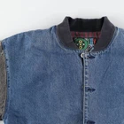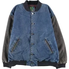 City Boy Denim Varsity Jacket Blue Men's L Made in USA Snap Button Used Features Specifications City Boy Denim Varsity Jacket Blue Men's L Made in USA Snap Button Used Brand Name: City Boy Product Type: Varsity Jacket Model: Denim Varsity Jacket Color: Blue Material: 100% Cotton Size: Men's L Condition: Used (Grade C) Other Features: Snap button closure, long sleeves, checkered liner This City Boy Denim Varsity Jacket is a stylish addition to any wardrobe. Made in the USA, this jacket features a classic blue denim design with a comfortable fit. The snap button closure and long sleeves provide practicality and style, while the checkered liner adds a unique touch. Please note that this is a used item, and it shows signs of wear including some fading, scuffs, and minor stains. Despite these imperfections, it remains a great piece for casual wear. Measurements: Length 66.5 cm, Width 61 cm, Shoulder Width 57 cm, Sleeve Length 58 cm. Embrace vintage fashion with this authentic varsity jacket!
