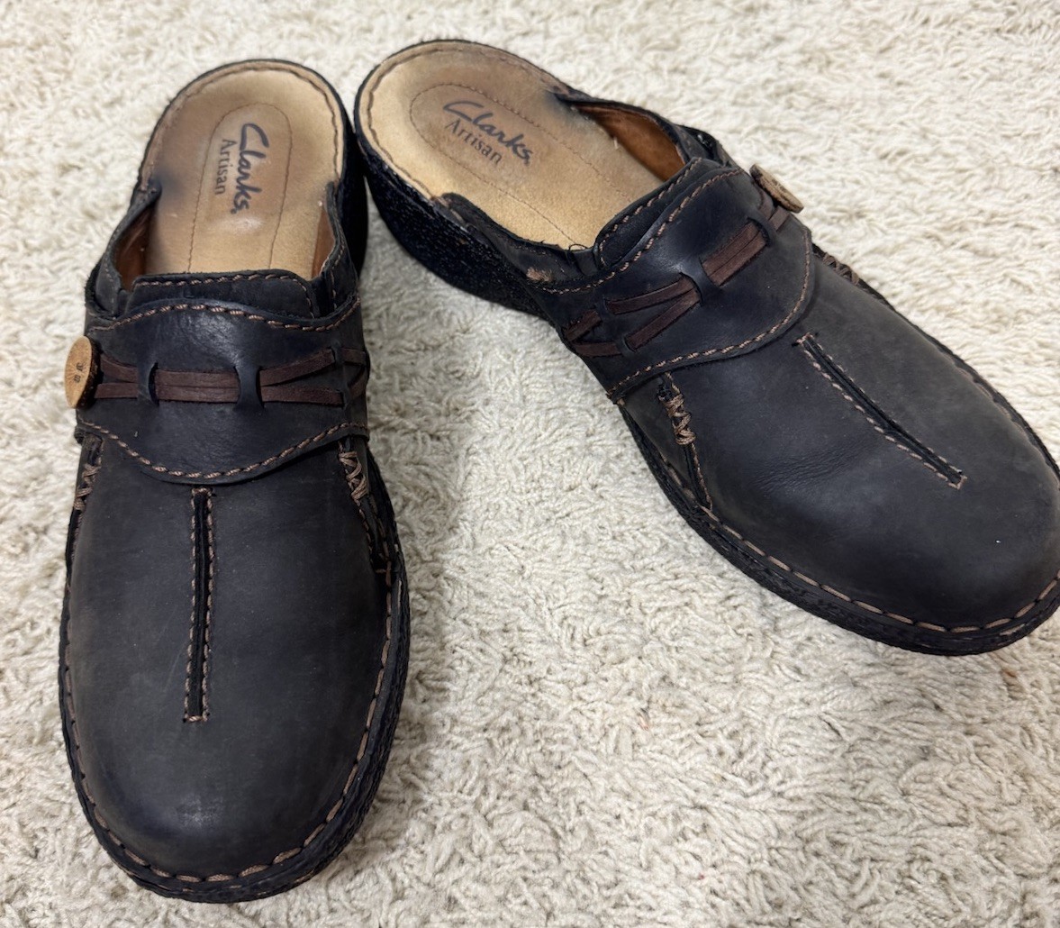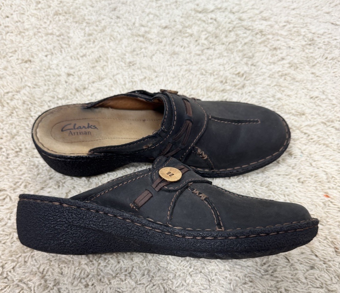 $ 11.01SOFFT London Mules Clogs Slip On Heels Women SZ 6 M Navy Tooled Leather 1009457