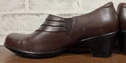 These are Clarks Bendables 63007 slip-on shoes in brown leather, designed for women in US size 7.5 with a round toe shape and mid heel height. They are suitable for travel, casual wear, and work settings. The shoes feature a comfortable foam insole, breathable microfiber fabric lining, and a durable rubber outsole. The style is a classic yet modern slip-on with a block heel, making them versatile for all seasons. Very good preowned condition with normal preowned wear. Please see all photos. For clothing specifically, see photos for all measurements and/or any issues if applicable. Pay close attention to the measurements as the size of the garment may quite possibly be different than the actual measurement(s) due to washing, shrinkage, or stretching as these are used clothes. The size in the title is the size on the tag of the garment. See photos for measurements of actual measurements as they may differ. ALWAYS CHECK THE MEASUREMENTS IN THE PHOTOS. This will remove any questions on measurements as well as always cover the possibility of human error in the listing(s) in the case of a typo or oversight. All clothing and shoes have been washed/cleaned, and comes from a smoke free environment. If shoe trees appear in the photos, they are for photography purposes only to illustrate how the shoes look filled out, and are not included. I am available for questions. I accept or negotiate reasonable offers. Have an amazing day. Thank you.