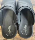 The Clarks Collection Mule Clogs in Women’s Size 8.5 Black Leather are stylish and comfortable shoes suitable for various occasions such as travel, casual wear, and workwear. These slip-on clogs feature a round toe shape, mid heel height, and a durable rubber outsole. The black leather upper material and cushioned insole provide comfort and breathability, making them ideal for wearing during the summer, fall, and spring seasons. Additionally, the clogs have a solid black color with a low top shoe shaft style, making them a classic and versatile choice for everyday wear.