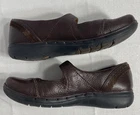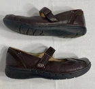 The product is a pair of Clarks Structured brown leather Mary Jane comfort shoes for women in size 6.5 M. These Mary Jane shoes feature a classic design with a comfortable fit, making them ideal for casual wear. The leather upper material ensures durability and quality, while the Mary Jane style adds a touch of charm to any outfit. The Clarks brand is known for its reliable and comfortable footwear, making these shoes a great addition to any woman's wardrobe.