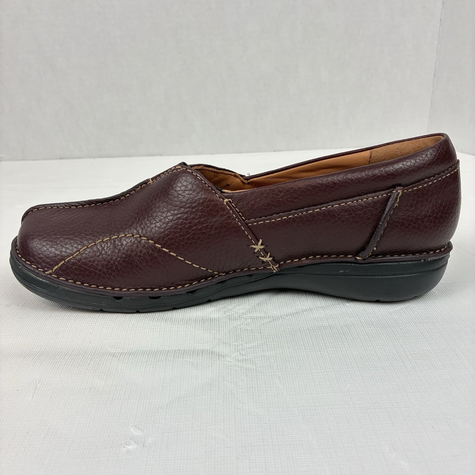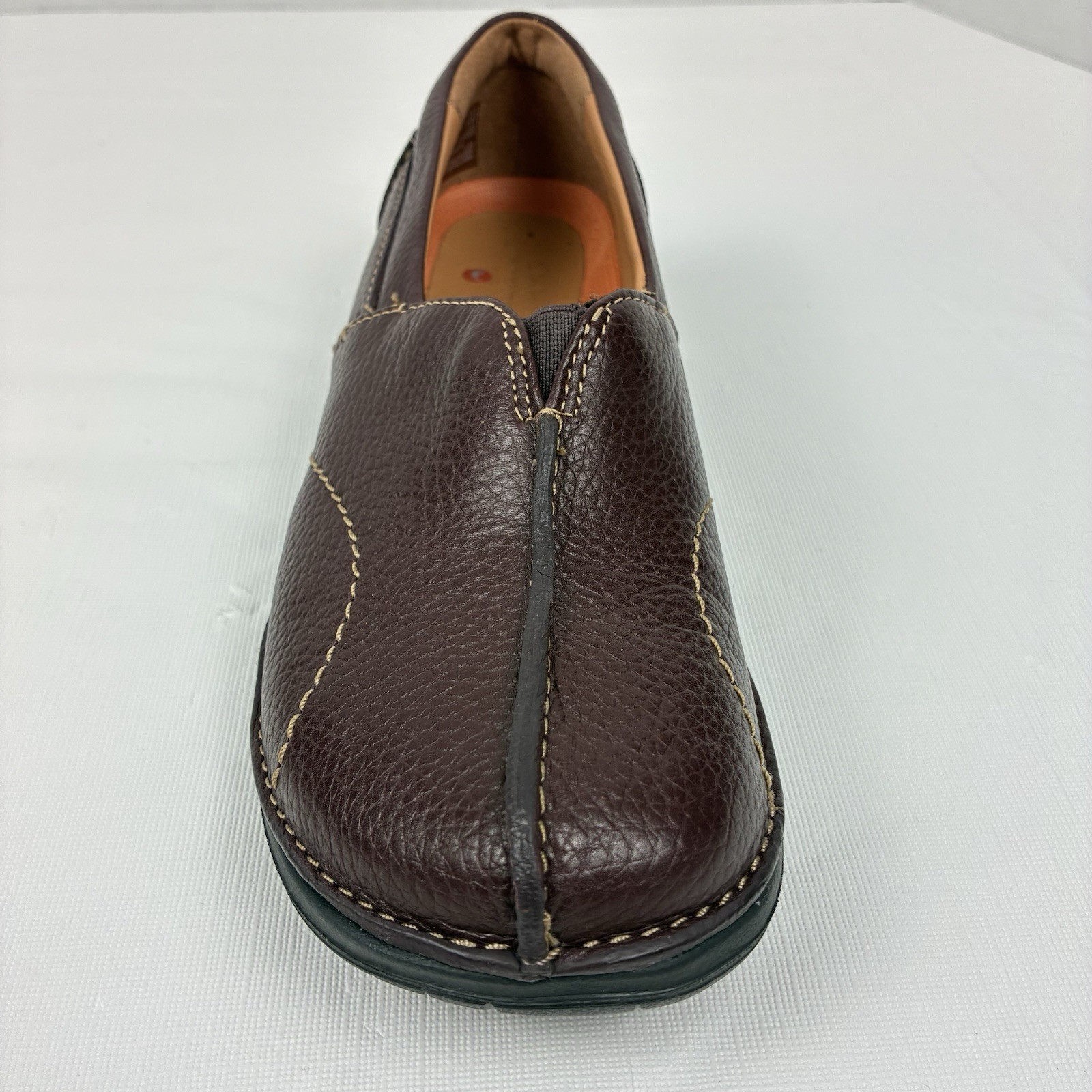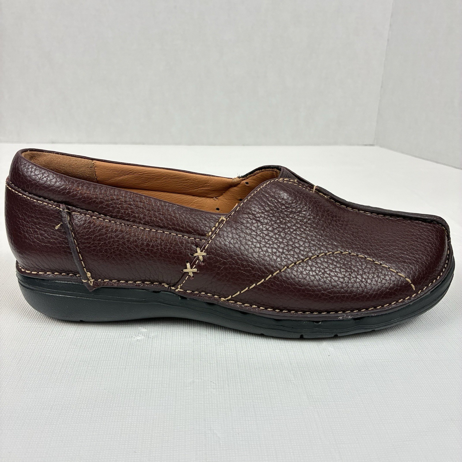 Experience everyday comfort with these Clarks Unstructured women’s loafers , crafted from soft brown leather with lightweight cushioning. These slip-on shoes feature a flexible rubber outsole and breathable leather lining for all-day wearability. Perfect for work, casual outings, or travel. Features: Genuine leather upper with contrast stitching Slip-on style for easy wear Cushioned insole for superior comfort Durable rubber outsole Classic, versatile brown color