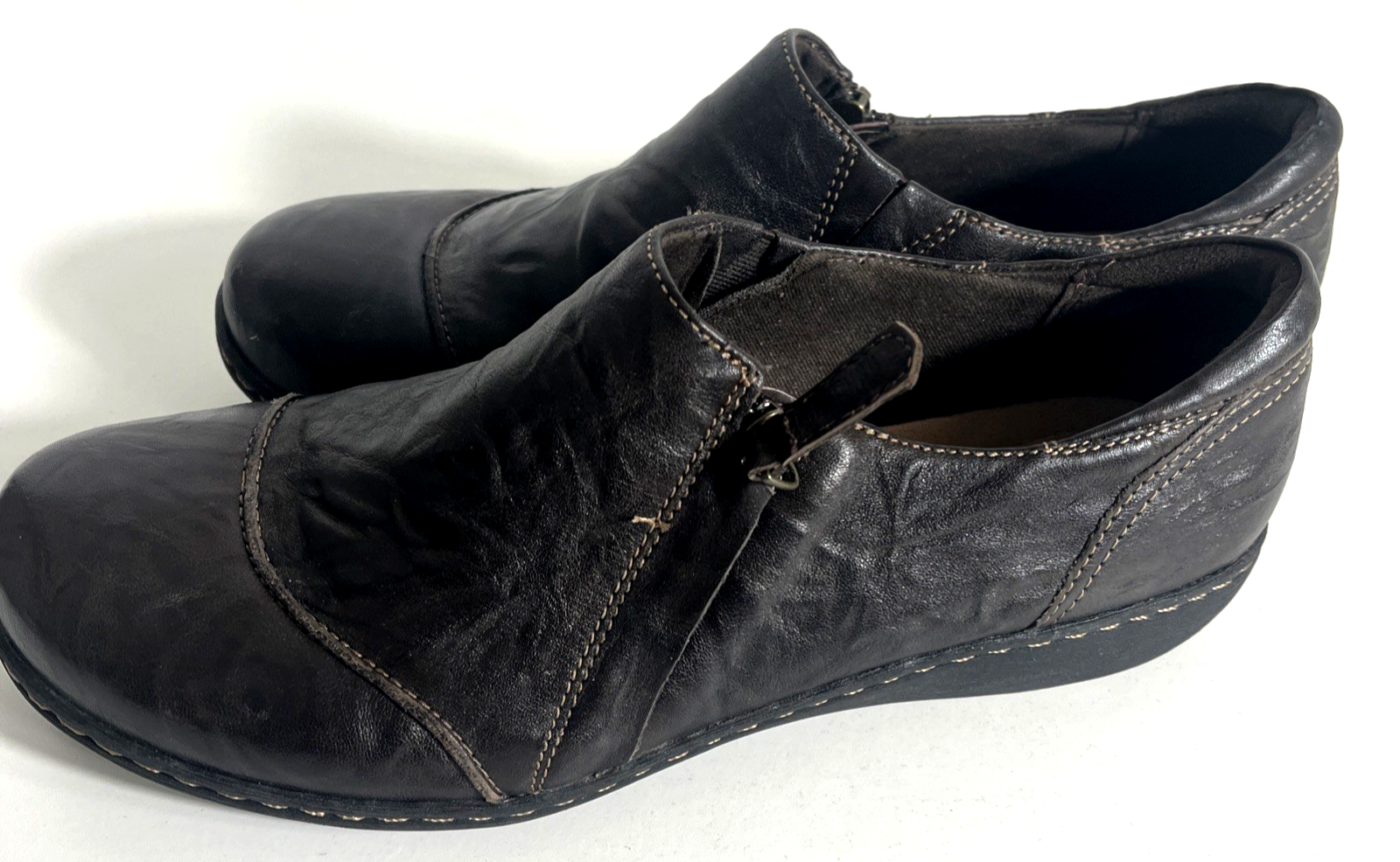 Clarks Side Zip Loafer Casual Shoe Women’s 10W Brown Leather Slip On Smoke free environment We try to ship same day or next day Feel free to message us with any questions Shoes are in good pre-owned condition (SEE PHOTOS)