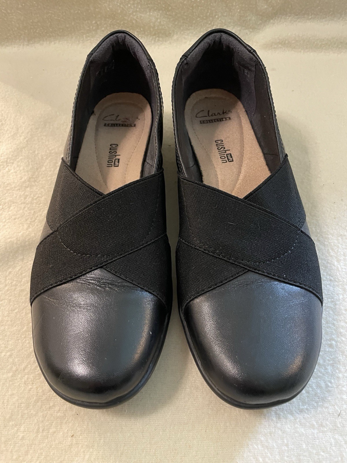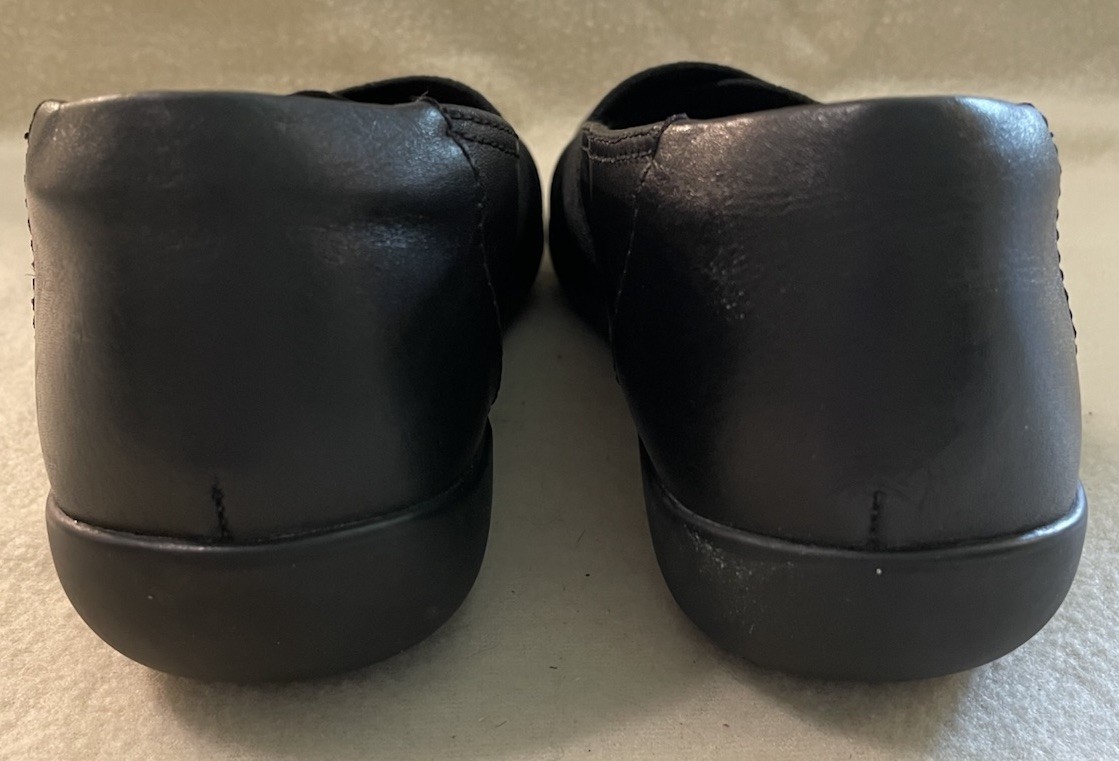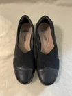 The Clarks Women's Medora Jem Flats in Size 8 are a comfortable and stylish slip-on shoe in black leather. With a round toe shape these flats are perfect for daily wear, whether for work, travel, or casual outings. The rubber outsole provides durability and support, while the foam insole ensures added comfort and cushioning. Suitable for all seasons, these Clarks Collection shoes are a versatile option for women looking for both style and practicality in their footwear. Please see pictures for condition.