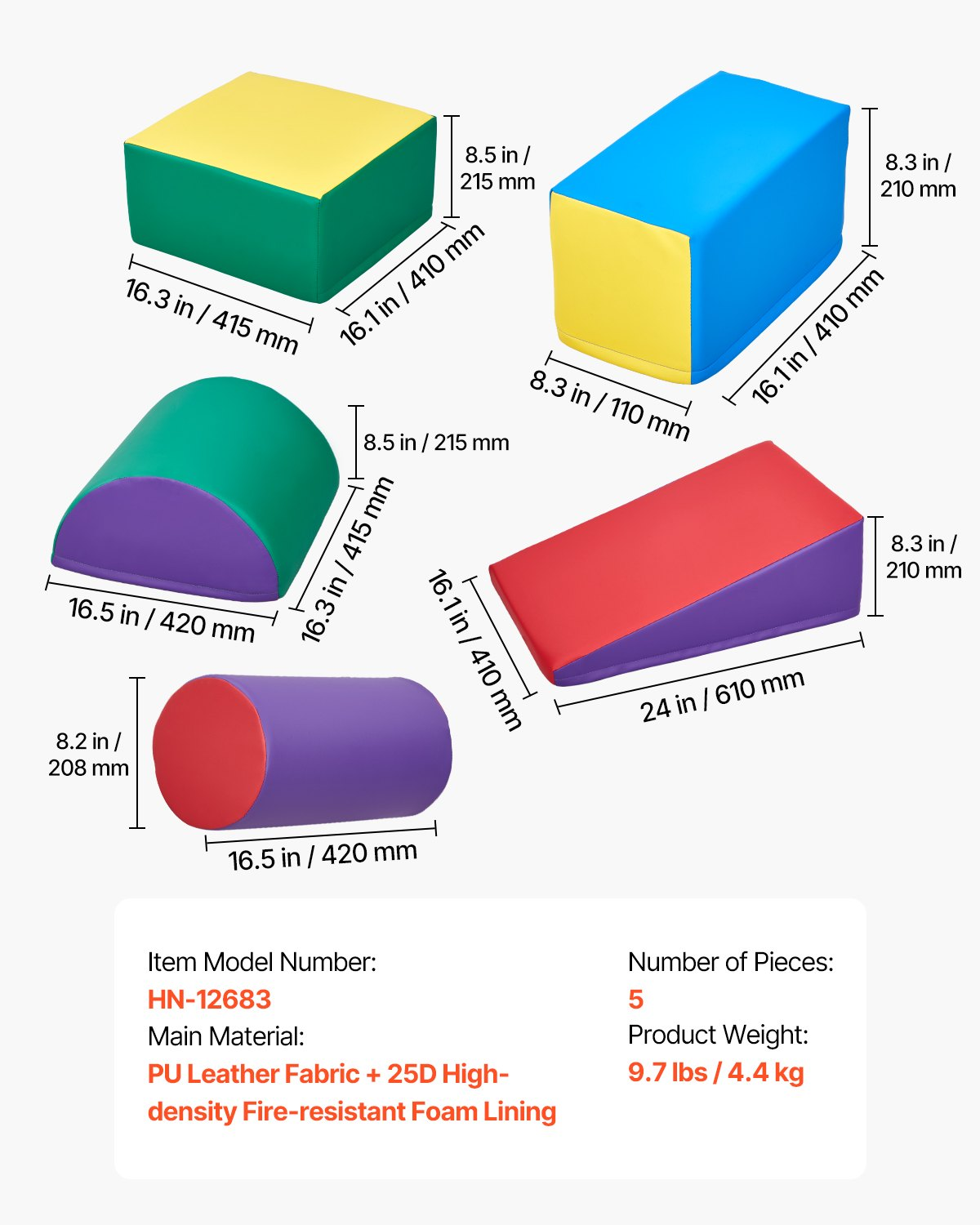Climbing Toys 5 Piece Foam Climbing Blocks Set for Toddlers and Preschoolers Sensory Development Soft and Resilient Secure and Reliable Easy to Store Wide Application Versatile Use Number of Pieces: 5,Item Model Number: HN-12683,Product Weight: 9.7 lbs / 4.4 kg,Main Material: PU Leather Fabric + 25D High-density Fire-resistant Foam Lining