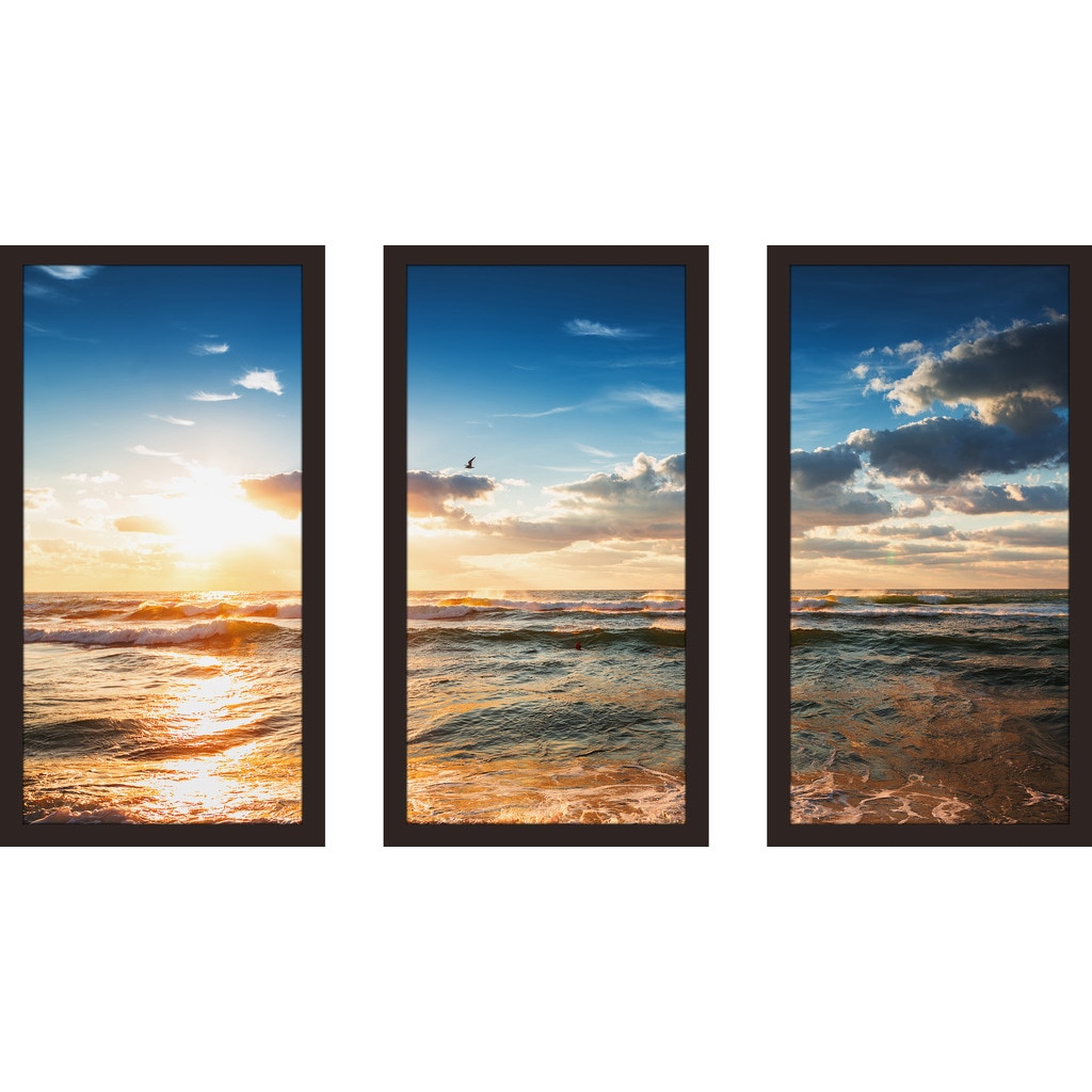 This Wall Art Set of 3 is printed on Plexiglass using a high-speed flatbed printer.Producing excellent print quality with a 6-color plus white UV-curable inkjet system.The breathtaking effect of fine art printed directly onto Acrylic is unique and exquisite.Its reflective vibrant colors creates a contemporary style of art that will bring depth to your walls.The artwork has been reprinted from the Artists' original piece with written permission.Made in North America & Arrives ready-to-hang.Frame: 1" EspressoThis framed art print is being custom built for you. Please allow 10 business days for the product to leave our warehouse. Shape: RectangleOrientation: HorizontalSubject: Photography, Sea & ShoreStyle: Fine Art Giclee, Contemporary Free Shipping Over $49.99* Details "Cloudscape over the Sea" Framed Plexiglass Wall Art Set of 3 Product Description: This Wall Art Set of 3 is printed on Plexiglass using a high-speed flatbed printer.Producing excellent print quality with a 6-color plus white UV-curable inkjet system.The breathtaking effect of fine art printed directly onto Acrylic is unique and exquisite.Its reflective vibrant colors creates a contemporary style of art that will bring depth to your walls.The artwork has been reprinted from the Artists' original piece with written permission.Made in North America & Arrives ready-to-hang.Frame1" EspressoThis framed art print is being custom built for you. Please allow 10 business days for the product to leave our warehouse. ShapeRectangle OrientationHorizontal SubjectPhotography, Sea & Shore StyleFine Art Giclee, Contemporary
