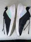The Clove Black Holographic Limited Edition 2022 Nursing Shoes Sneakers in size 8 are a stylish and functional option for women looking for comfortable footwear. With a round toe shape, cinch drawstring closure, and easy cinch laces, these sneakers offer a snug and adjustable fit. The black color with holographic accents adds a trendy touch, while features such as fluid resistance and breathability make them ideal for various occasions including travel, activewear, casual wear, and even workwear. Made with synthetic upper and lining materials, these sneakers also have a rubber outsole for durability and support, making them a great choice for those on their feet for extended periods of time.