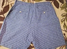 This Club Room Men's Dress Fashion Short Pants in size 34 feature a unique plaid pattern in a blue color, made from a blend of 55% linen and 45% cotton fabric. These 4 pocket denim shorts have a medium wash and a vintage look, with a pleated front design and a regular fit. The inseam measures 8 inches, making them suitable for various occasions such as travel, casual outings, or even business settings. Made in Indonesia, these well-crafted shorts offer a stylish and comfortable option for men's clothing.