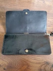 LACOSTE Black Leather Wristlet Wallet with Gray Piping and Buckle Zip Pocket 7x4