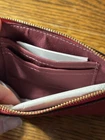 This is a NEW Coach Corner Zip Wristlet in red leather, measuring 6"x4". It features a strap, Coach logo accent, and can hold credit cards. Perfect for women looking for a stylish and functional accessory.