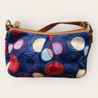 Preowned. Great Condition Coach Leah Polka Dot Tote Purse Navy Blue with Red White Circles Y2K Bag Coach Logo Multicolor Coach Handbag. Light tan Leather arm straps with silver chrome strap links. Multicolor fabric on the outside. Baby Blue fabric on inside of handbag. Don't like the price? Make me an offer! Questions? Ask before purchasing! Our merchandise is carefully selected by myself, but please understand that not all items are new. Most are preowned and preloved and will be described as such in the description. See photos for rough measurements; Due to light & screen variations, colors may vary slightly from the images. Items have been cleaned according to ebay’s guidelines and ship from a smoke free home. Return Policy A purchased item is eligible for a free return for up to 30 days from the date of purchase. Items must be in the same condition as shipped. Original condition means the item is not washed, worn (aside from trying it on), damaged or altered and returned with all hangtags and original packaging(Box). Any item not meeting the condition standards of this policy will be returned at the customers expense. Additional terms: Customers are held responsible for safe return of the item. Thank you! Well Favored Threads!
