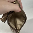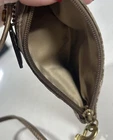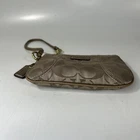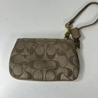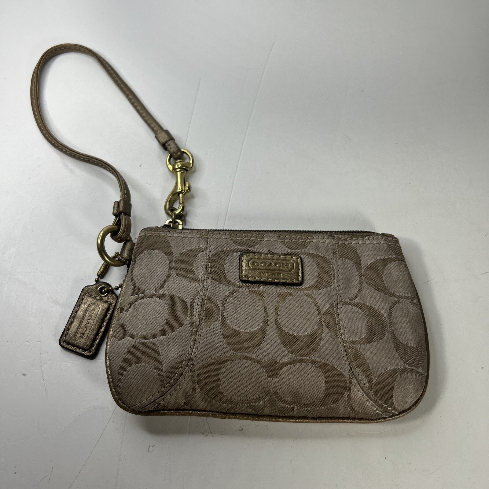 Coach Small Jacquard & Leather Wristlet with Gold Hang Tag in Khaki