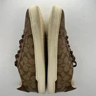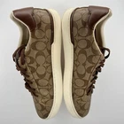 Step up your casual style game with these Coach Signature lowline coated canvas lace-up sneakers. The brown and tan color combination is perfect for summer, fall, and spring walks or outings. The D shoe width and foam insole material provide comfort and support for your feet, while the rubber outsole ensures durability and traction. These women's sneakers feature a flat heel style and are under 1 inch in height, making them perfect for everyday wear. The canvas lining material and fabric upper material add to the overall comfort and breathability of the shoes. The Coach Signature product line ensures quality and style that is unmatched. Get your hands on these stylish sneakers today! 100% CUSTOMER SATISFACTION IS OUR GOAL! Our items are always carefully examined for condition, measured if necessary, and photographed in a climate controlled and smoke-free environment. We make every attempt to accurately describe and clearly picture the items we have for sale. Please, ALWAYS view all of the photos. We value your business and our goal is your complete satisfaction. FAST SHIPPING All items are packaged with care and shipped out the same or next business day via USPS, FEDEX, or UPS with tracking numbers so you are always informed. RETURNS We offer a 30-day return policy. All items must be unused and unopened in the condition in which they were received, with original packaging, and all accessories included for return. REVIEWS - CUSTOMER SATISFACTION - COMMUNICATION We aim to make you happy. After you receive your shipment, please leave a positive review . If you have concerns or questions about your order, please contact us so we can resolve the issue. We will do our best to make you satisfied. THANK YOU FOR YOUR BUSINESS!