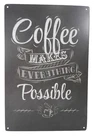 Coffee Makes Everything Possible Funny Tin Sign Bar Pub Garage Diner Cafe Home Wall Decor Home Decor Art Plaque Retro Vintage Product Details Color: Black & White Brand: Strosportsandtech Material: Metal Theme: Vintage Mounting Type: Wall Mount Product Dimensions: 11.8"L x 7.87"W Shape: Rectangular Item Weight: 0.12 Kilograms Style: Vintage UPC: 731132439023 Item Weight: 4.2 ounces Manufacturer: Strosportsandtech Is Discontinued By Manufacturer: No size: 20cm*30cm (7.87 X 11.8 inch) great for your bar, pub, diner, man cave, or anywhere you have wall space vivid colors that will never fade Pre-drilled holes for easy hanging on the wall Each sign comes in its own poly bag These signs are great to hang at your bar, pub, man cave, den, living room, diner, or anywhere you have wall sapce. Some signs may have a rust or painted lines appearance. These lines are part of the sign to give it a retro vintage look. They are not actually rust or paint lines. These signs are made with water transfer printing technology that have vivid color and will never fade. Each sign comes in a poly bag.