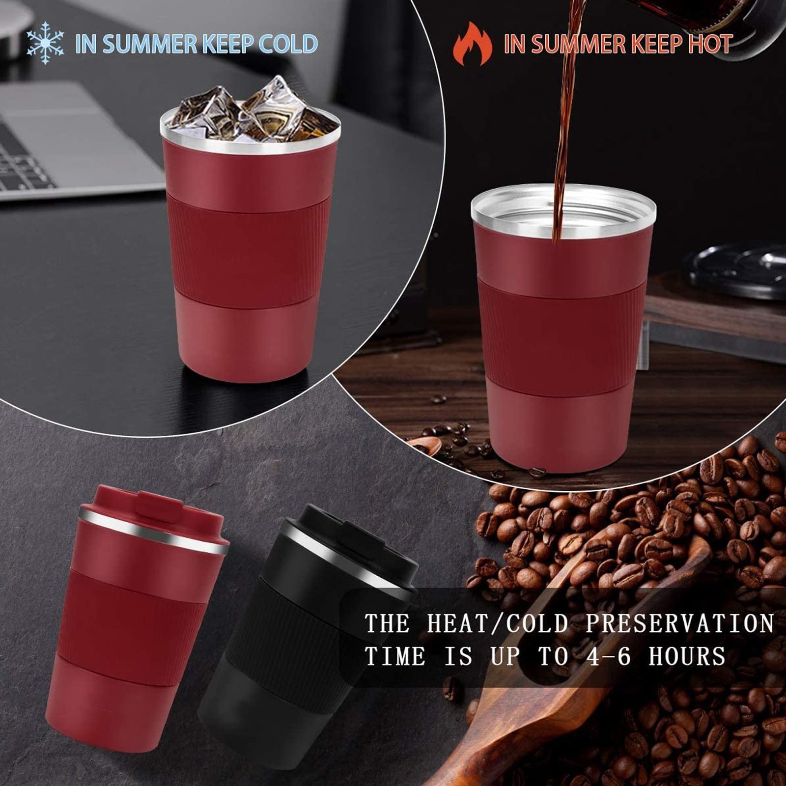 Coffee Mug 12Oz - Insulated Coffee Travel Mug Spill Proof with Leakproof Lid 【Keep warm and cold for hours】Travel mug for a prolonged period of time. Any drink that is hot, like coffee,Cooler drinks (i.e. lemonade) can stay hot / frozen drinks for up to 4 hours. The high-quality 304 stainless steel , BPA free and the double-walled insulation design ensures beverage can stay either hot or cold over time. 【Perfect capacity】380ml/12oz capacity of the travel mugs with beautiful shape and the cup body is light, bring you a good feeling for using, you can enjoy your coffee, tea, wine, juice, oatmeal quite well. Suitable for indoor and outdoor use such as the car, home, parties, travel and office hours. 【Stylish Design】Compact and lightweight, fits most cup holders. The silicone textured band of the surface makes this cup easy to grip, non-slip base prevents the coffee mug from sliding or tipping over. Wide opening makes it easy to clean and add ice cubes, meanwhile hard to breed bacteria(Hand wash only, the dishwasher is not recommended). 【Easy to Drink with One Hand】Travel coffee mug includes an eco-friendly flap opening that makes drinking one-handed a breeze.The coffee mug lid comes with an airtight silicone seal that prevents the drinks from spilling. And the surface of the lid also has a straw hole design, which allows you to drink straight from the cup or use a straw. Comes with a silicone cover on the body, it can help you hold it comfortably. 【Great Gifts】This reusable coffee tumbler can be given to lover, friends and family as a really nice gift for Birthday, Thanksgiving Day, Chrisrmas, Valentine's Day. If you encounter any problems at the time of purchase or after receiving the coffee tumble, please contact us in time. We are happy to solve your problems. 1 Shipping We offer FREE shipping on all orders! We ship within Three business days of payment, usually sooner. We use a selection of shipping services such as UPS, FedEx, USPS etc. We only ship to the lower 48 states, no APO/FPO addresses or PO Boxes allowed. Local pickups and combined shipping options are not provided at this time. Return You can return a product for up to 30 days from the date you purchased it. Any product you return must be in the same condition you received it and in the original packaging. Please keep the receipt. Payment We accept payment by any of the following methods: PayPal Please pay as soon as possible after winning an auction, as that will allow us to post your item to you sooner! Feedback Customer satisfaction is very important to us. If you have any problem with your order, please contact us and we will do our best to make you satisfied. Contact Us If you have any queries, please contact us via ebay. We usually respond within 24 hours on weekdays. Please visit our eBay store to check out other items for sale! Thank you for shopping at our store.