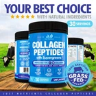 HEALTHY HAIR, SKIN & NAILS - Improve your hair, skin, nails and joint with Collagen Peptides with Super Greens! Our proprietary instant absorption formula ensures that you get all the benefits of this premium protein blend quickly and effectively. EASY TO TAKE - Our unflavored collagen peptide is perfect for adding to your favorite drinks, smoothies, or recipes for a boost of nutrients. Plus, it contains digestive enzymes to help your body better absorb and utilize the protein. PREMIUM QUALITY - Our collagen is sourced from grass-fed and pasture-raised cows, ensuring the highest quality and ethical standards. Plus, the addition of super greens provides even more vitamins and minerals for overall wellness support. 30 SERVINGS PER CONTAINER - Each container includes 30 servings, giving you a full month's worth of collagen peptide to help you achieve your and beauty goals. Try it today and experience the benefits for yourself! NATURAL INGREDIENTS - Collagen Peptides with Super Greens are made with all-natural ingredients and contain no artificial sweeteners, colors, or flavors, making it a clean and healthy option for anyone looking to improve their overall wellness.