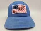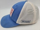 Has stains/discoloration all around the hat as seen in photos. Columbia PFG American Flag Distressed Mesh Trucker Snapback Hat Cap Blue White. EACH ADDITIONAL HAT PURCHASED IS ONLY $1 ADDED SHIPPING!