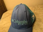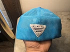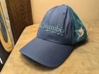 This fits as a medium for sure and maybe even with some room. Please ask if you have any questions. It is in pretty good condition. I'd say the front logo area. There is a little bit of a wavy wheel going on when the hat is off. Otherwise it is in great condition. Show off your love for fishing and travel with this Columbia PFG Mesh Ball Cap. The cap features a solid blue color with a mesh back and an adjustable strap for a comfortable fit. It is made of a blend of polyester and cotton fabric with a canvas texture, making it breathable and perfect for summer and spring. The cap also features the Columbia PFG brand logo and a fish-themed character, making it a great addition to any casual outfit. Its size is S/M, suitable for men who love to explore the outdoors. Get ready to hit the road or go fishing with this stylish and functional trucker hat.