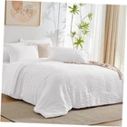 Return Policy Fast Delivery Trusted seller King Comforter Set with Sheets White Seersucker Bed in a Bag 7-Pieces All Season Bedding Sets with Comforter, Pillow Sham, Flat Sheet, Fitted Sheet, Pillowcase Product Description The complete set utilizes 100% Microfiber. Whole-piece microfiber fill in the comforter provides exceptional warmth and cozy. The front side just has the “wrinkled look” and the underside is smooth. Solid stitching for the comforter largely improves its durability, well-preventing bunching and creates a lightweight quilt for year-round comforts. Elaborate Design: The elastic deep pocket fitted sheet fits mattress max up to 14" deep. That can always keep non-slip no matter how you twist and turn in your bed. Soft white tones add a touch of color to this elegantly simplified look. What You Can Get: King Size 7-Piece bed in a bag includes - 1x Comforter(102" * 90") + 2x Pillow shams( 20" * 36")+ 2x Pillow cases( 20" * 40")+ 1x Flat sheet(108" * 102")+ 1x Fitted sheet(78" * 80") - Our bed in a bag is packaged in a vacuum bag, so you can dry it in low heat or tap the comforter gently while baking it in the sun to fluffy again. Easy Care: The bedding sets are machine washable which can save you more time and energy. For year round softness and prevent pilling up, it's highly recommend to wash it in the gentle cycle with cold water, sun-dry or tumble dry in low when needed. Let our comforter sheets keep providing you and your family with cozy sleeping. Satisfactory Service and Reminder: The product color may look vastly different under different lighting conditions. As your satisfaction is of the utmost importance to us. is committed to offering you premium products and a caring service. Please feel free to contact us if you have any questions about our products. We would try our best to solve problems as soon as possible. Shipping Returns Payment Shipping Shipping is FREE to all addresses other than APO/PO boxes in the lower 48 states. All our stock ships from US-based warehouses. Shipped via USPS or UPS (depending on location and package weight) Unless stated otherwise, all orders will ship within 24-72 hours of your payment being processed. Check our feedback to see the great reviews of FAST shipping we offer. Returns Seller does not accept returns Payment We currently accept payment via eBay managed payments only. Once payment is cleared, we will dispatch your shipment within 1-3 business days. Please refer to the "Shipping" tab for more information regarding shipping speed to your destination.