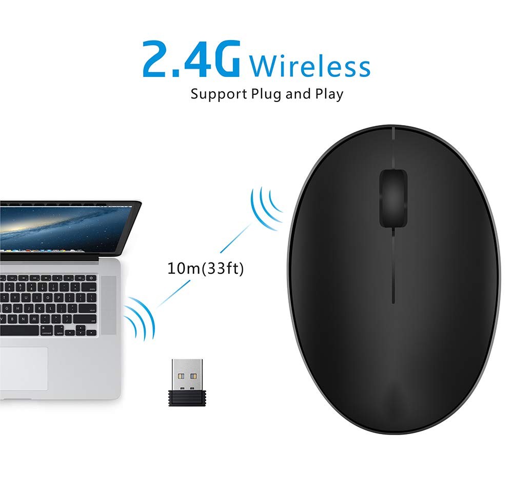 Super Mini Size: This wireless mouse is definitely pocket mini size (2.6x1.6x1.2 inch). Perfect fit for traveling and children use. You can easy take go wherever as you want. Rechargeable & Durable: Built-in rechargeable battery, no need to change batteries. Lower energy consumption and stable performance.(Note: If the charging cable not come in the package, please reach us for solution.) Auto Sleep Function: The mini mouse for computer and laptop comes with auto sleep function. It will auto be in sleeping mode if you are not using to help save battery. Pls click any button to wake it up. Silent Click: Left and right button silent design make you work or play in a quiet environment. No need worry disturb others anymore. 2.4GHz Wireless Connectivity: 2.4GHz wireless mouse, long-distance wireless transmission up to 10 meters. No additional software required, simply plug and play. High precision and free control without troublesome cord.