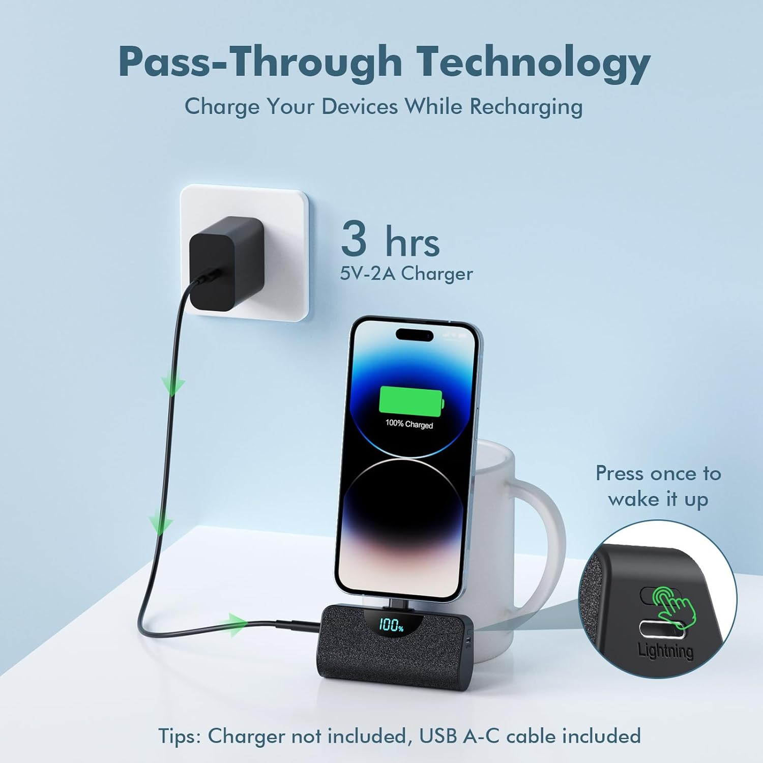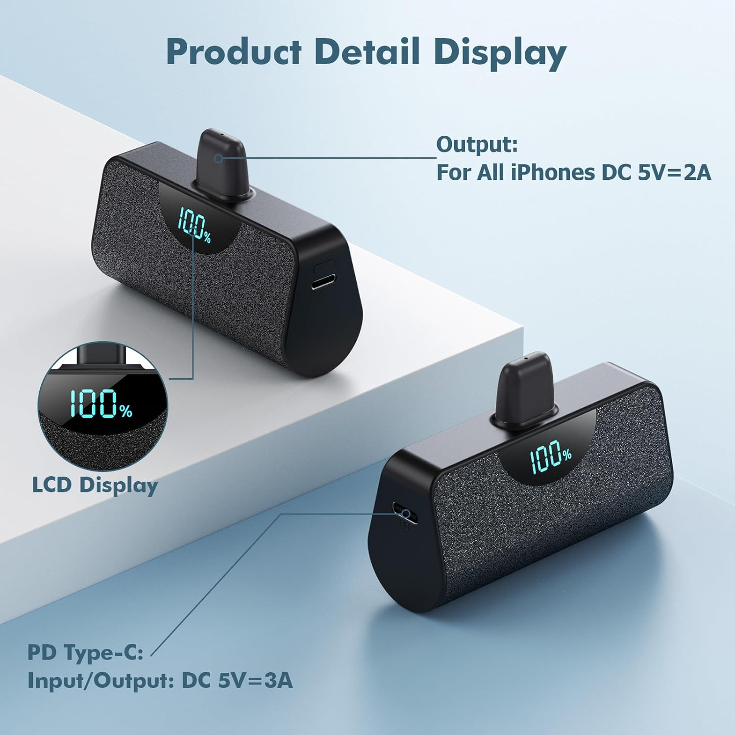 Store New Arrivals Add to Favorite View Feedback Contact OliverStore has been in the US market for over 5 years and offers free delivery to the customer's home with professional customer service Mini Portable Charger Power Bank for Iphone, 5200Mah External Battery Charging Bank, 20W PD Fast Charging Battery Pack Portable Phone Charger for Iphone 14 Pro Max/14/13/12/11/Xr/X/8/7/6/Se Series Description 【20W PD Fast Charger for iPhone】The mini power bank for iPhone can directly plug-in charging for your iPhone and no need extra cable. Power your device quickly and efficiently with 20W output. The USB C port on the side support input and output. 【Portable Charger for iPhone Series】The portable charger powerbank is special designed for iPhone 14 Pro Max/ 14 Pro/ 14 Plus/ 14 Mini/ 14/ 13 Pro Max/ 13 Pro/ 13 Mini/ 13/ 12 Pro Max/ 12 Pro/ 12 Mini/ 12/ 11 Pro Max/ 11 Pro/ 11 Mini/ 11/ XR / Xs/ X/ Xs Max/ 8/ 8Plus/ 7/ 7Plus/ 6/ 6s Plus/SE. [NOT work for iPhone 15 Series!] 【5200mAh iPhone Charger with LCD Display】With 5200mah upgraded charging bank capacity, the mini portable charger is always ready for iPhone! Keeping your phone alive at all time on the go and don't worry about your phone is short battery. Smart LCD digital display shows the exactly battery percentage of the portable phone charger. 【Ultra-Compact External Battery for iPhone】This battery charger bank is as compact as lipstick, weight 100g, which is very easy to carry or slips into your pocket/bag. Be ready to accompany you on your travel anytime, not being tied by other bulky charger. 【Safety Small Emergency Battery Backup Charger】Small Portable charger built-in smart chip can effectively protect your phone battery away from overcharge, over-voltage, over-current and short circuit. 【What You Get】5200mAh mini portable charger power bank for iPhone x 1, USB A to C Cable x 1, User manual x 1. Pxwaxpy serve you wholeheartedly: 30-day easy returns and lifetime technical support. Product Description 5200mAh Mini Portable Charger Power Bank for iPhone 14/13/12/11/X/8/7/6/SE Series Mini Portable Charger 5200mAh Ultra-Compact 20W PD Fast Charging Power Bank Mini Size, Big Power With 5200mAh upgraded battery bank capacity, the mini portable charger is always ready for iPhone! Keeping your phone alive at all time on the go! Ultra small and ultra lightweight, dimensions is only 3.03 x 1.93 x 1.05 inches, weight 3.53 ounce, and no need cables again. Plug-in and High-Speed Charging 20W Fast charging speed to crush your low-battery anxiety, just plug-in, then power up your for iPhone 14 from 20% to 70% in half an hour. PD USB-C fast recharging and support pass-through charging Unmatched Compatibility The portable battery charger is designed exclusively for iPhone 14/13/12/11/X/8/7/6/SE Series charging Travel Essentials - Travel Must-have! The small portable phone charger for iPhone is as compact as lipstick that easily slips it into your pocket, purse, or bag to be ready to accompany you on your traveling. Portable Charging Bank Compatible with iPhone and Airpods 5200mAh Portable Phone Charger for iPhone Battery Backup Charger Mini cell phone portable power bank is borned for iPhones and AirPods, this portable iPhone charger is widely compatible with iPhone 14, iPhone 14 Pro, iPhone 14 Plus, iPhone 14 Pro Max, iPhone 13, iPhone 13 Pro, iPhone 13 Pro Max, iPhone 13 Mini, iPhone 12, iPhone 12 Pro, iPhone 12 Pro Max, iPhone 12 Mini, iPhone 11, iPhone 11 Pro, iPhone 11 Pro Max, iPhone 11 Mini, iPhone XR, iPhone X, iPhone XS Max, iPhone XS, iPhone 8, iPhone 8 Plus, iPhone 7, iPhone 7 Plus, iPhone 6, iPhone 6 Plus, iPhone 6s, iPhone 6s Plus, iPhone SE, and also other earlier iPhones, AirPods and AirPods Pro etc. [Not work for iPhone 15 series !!!] PD Fast Charging Battery Pack for iPhone with LCD Digital Display Convenient, Lightweight, Pocket friendly, Plug in & Charge! 5200mAh phone charger battery pack portable, Light weight but big capacity, an ideal charging companion for short travel. Practical Pass-Through Features Battery Pack supports pass through charging, when recharging power bank, it can charge for your iPhones too by press the power button once. PD USB-C Fast Recharging Portable Power Bank Fully recharged this portable charger only takes 1.5 hours by 9V-2A Quick recharging. Fully recharging will take 3 hours by a 5V-2A normal charger. (Charger adapter is not included, the USB C port on the side support input/output) Cordless Portable Charger, Plug in and Power on for iPhone Directly Item model number HX45K8 Whats in the box USB A to C Cable x 1, User manual x 1, 5200mAh mini portable charger power bank for iPhone x 1 Battery Capacity 5200 Milliamp Hours Color Black Product Dimensions 3.03 x 1.93 x 1.05 inches Connector Type Compatible with iPhone 14/13/12/11/X/8/7/6 Series Item Weight 3.53 ounces Batteries 1 Lithium Polymer batteries required. (included) Special features Mini Portable Charger for iPhone Power Bank, 5200mAh Charging Bank for iPhone, 20W PD Fast Charger for iPhone, Case-friendly Cordless Plug in & Charge Emergency Battery Backup Charger for iPhone, Lipstick Size Portable Phone Charger, Airline Approved Safety Travel Charger Other display features Wireless Special Feature function(f) {var _np=(window.P._namespace("DetailPageProductOverviewTemplatesJava"));if(_np.guardFatal){_np.guardFatal(f)(_np);}else{f(_np);}}(function(P) { P.when('A').execute(function(A){ A.on('a:truncate:po-attribute-truncate-4:updated', function(data) { var isTruncated = !data.truncateInstance.getIfTextFits(); var seeMoreElement = document.getElementById('po-attribute-see-more-id-4'); if(seeMoreElement) { seeMoreElement.style.display = isTruncated ? '' : 'none'; } }) }); })); Mini Portable Charger for iPhone Power Bank, 5200mAh Charging Bank for iPhone, 20W PD Fast Charger for iPhone, Case-friendly Cordless Plug in & Charge Emergency Battery Backup Charger for iPhone, Lipstick Size Portable Phone Charger, Airline Approved Safety 