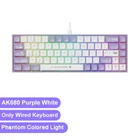 PRODUCT PARAMETERS: Product brand: AJAZZ Product model: AK680 Product weight: 460g Shell material: ABS injection molding Electric lighting effect: single-mode interval mixing/dual-mode no light Key cap material: ABS Battery: dual-mode dry cell power supply (two 7 batteries, not complimentary) Product size: 310x100x19mm Wire length: single-mode 1.6M PVC wire with shielded magnetic ring (white) Key layout: 68 keys Transmission method: 2.4G wireless/wired/5.0 Bluetooth (This product includes wired specifications, please check the order information before purchasing to avoid placing the wrong order) Supported systems: Windows Vista/XP/7/8/10/11, Mac, Android Packaging list: keyboard * 1, single-mode data cable * 1, instruction manual * 1, pearl cotton bagKey puller/shaft puller 2-in-1 * 1 PRODUCT FEATURES: Mechanical Operation : Experience the superiority of mechanical operation with Ajazz ak680 keyboard. Its rigid mechanism ensures quick and accurate keystrokes, enhancing your gaming performance. 68-Key Standard : This keyboard adheres to the standard 68-key layout, providing all the necessary keys for a seamless typing experience. Wired Connectivity : The wired connectivity feature ensures stable and reliable performance, eliminating any lag or delay during your gaming sessions. Compact and Portable : Its compact design makes it easy to carry around, perfect for gamers on the go who need a reliable keyboard wherever they go. Hot Swap Feature : The hot swap feature allows you to customize your typing experience by easily switching between different key switches.
