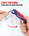 This compact utility knife is a game-changer! The ergonomic grip feels secure, and the quick blade change makes swapping effortless. Comes with five extra blades—perfect for any cutting task. Lightweight yet sturdy, it’s my new go-to tool for home and work. Highly recommend!